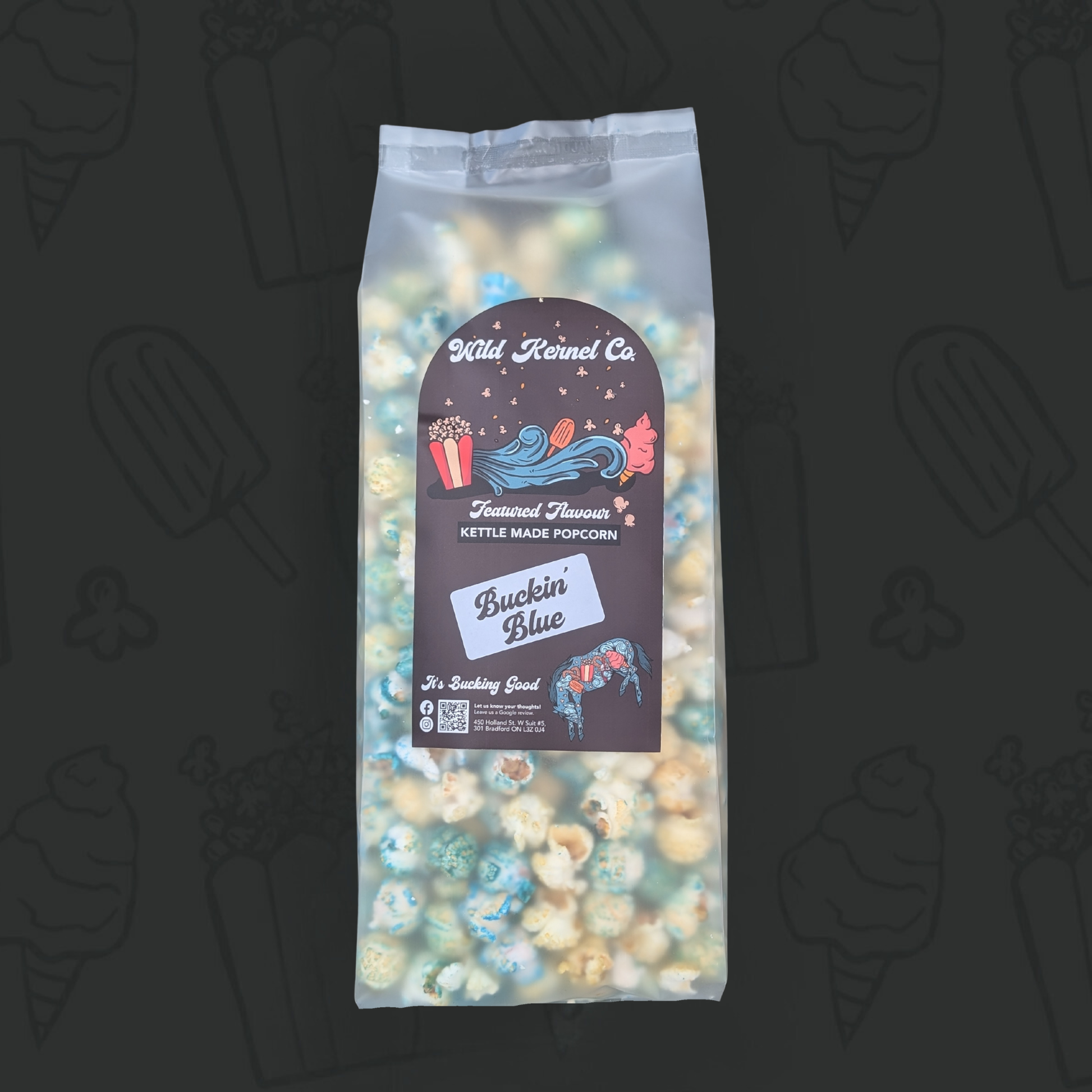 Meet Buckin’ Blue, our fan-favourite Sweet & Salty popcorn with a game-day twist. This blue-hued batch is light, crunchy, and perfectly balanced — just like the original, only dressed to impress. Whether you’re cheering from the couch or snacking for the fun of it, this kettle corn’s buckin’ good and ready to rally.